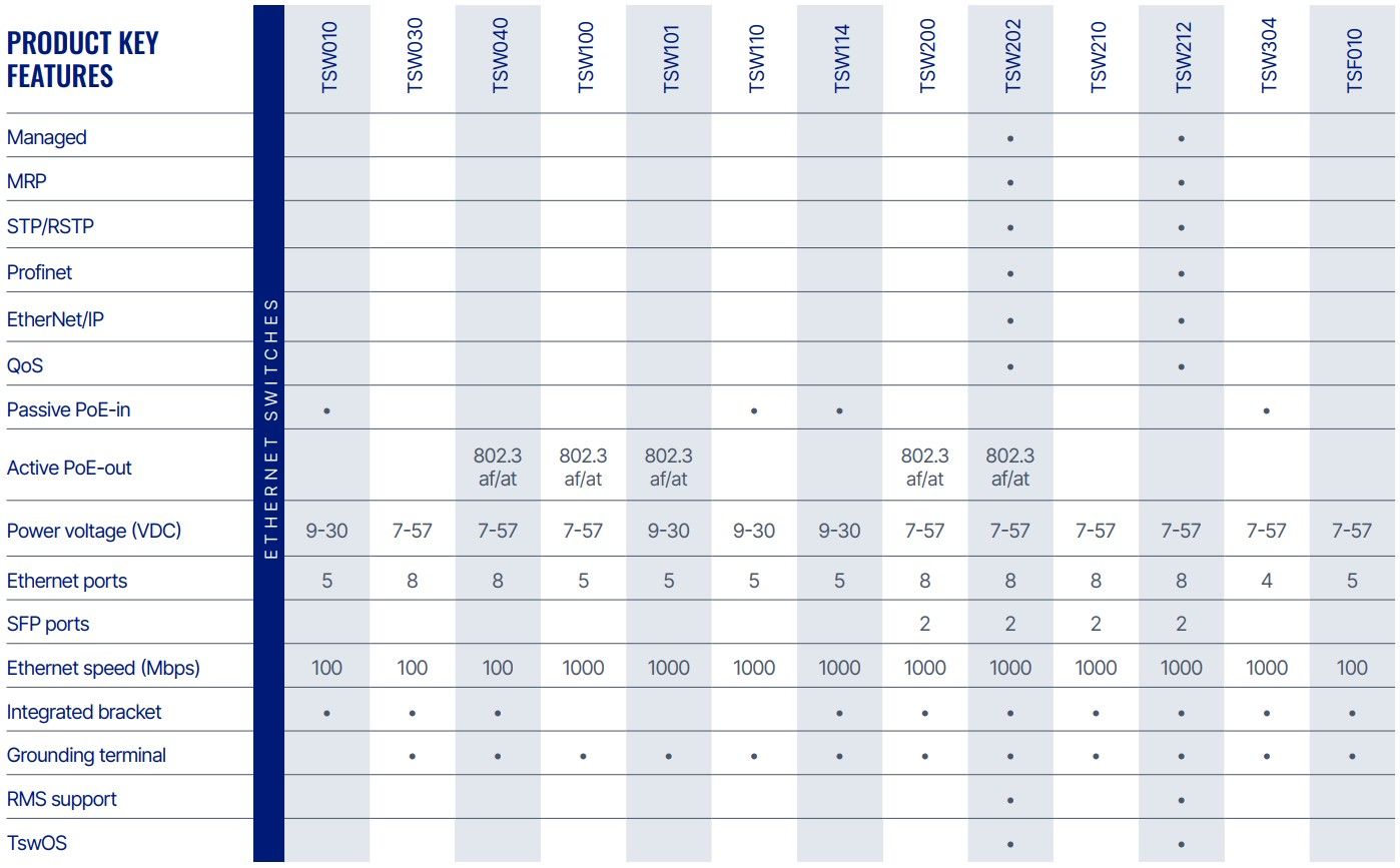 TSW200 yra nekonfigūruojamas pramoninis šakotuvas su 2 SFP prievadais, skirtais tolimojo pluošto optiniam ryšiui ir 8 Gigabitiniais eterneto prievadais, kurie palaiko IEEE802.af ir IEE802.3at PoE+ standartus. TSW200 leidžia centralizuoti maitinimo šaltinį, tiekiant iki 30 vatų per vieną prievadą.